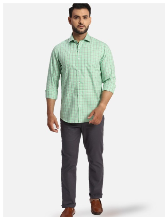 Green other checks checked opaque Casual shirt ,has a spread collar, button placket, na pocket, long regular sleeves, curved hem