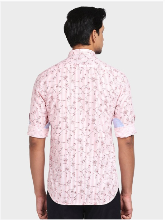 Pink floral printed opaque Casual shirt ,has a spread collar, button placket, long regular sleeves, curved hem