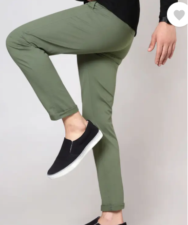 Men Regular Fit Green Pure Cotton Trousers