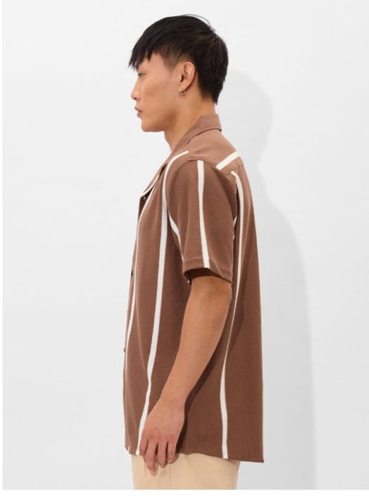 Brown textured striped opaque Casual shirt ,has a spread collar, button placket, na pocket, short regular sleeves, straight hem