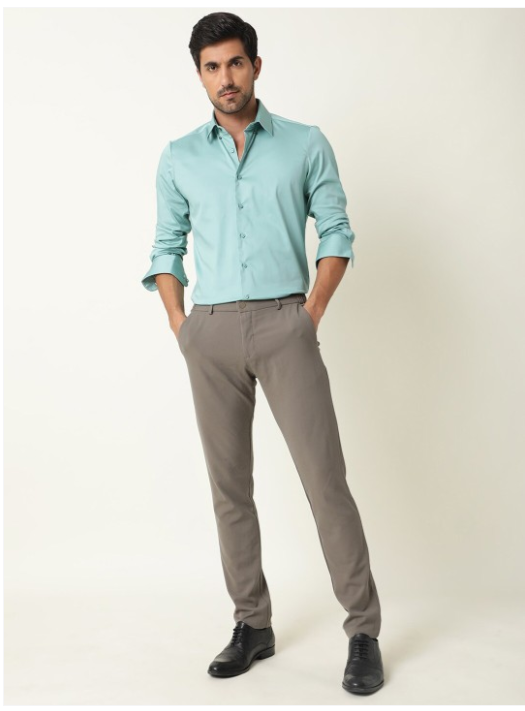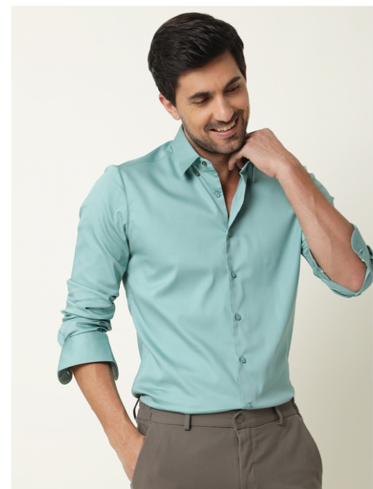 Solid opaque Casual shirt ,has a button-down collar, button placket, long regular sleeves, curved hem