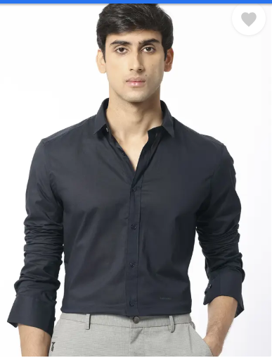 Men Slim Fit Solid Spread Collar Casual Shirt