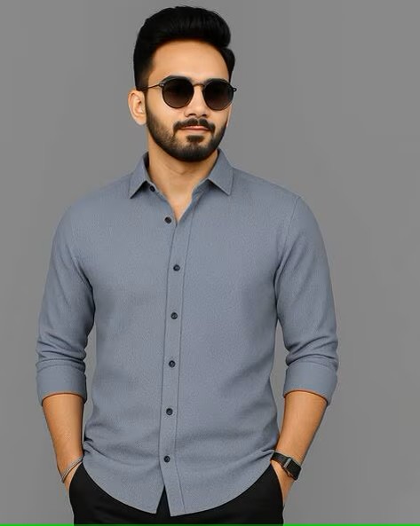 Men Regular Fit Shirt with Curved Hem
